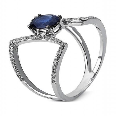 Luna Creation - Bague - Or Blanc 14K Diamant 0.23ct Saphir - 1B684W4535-1-53.5